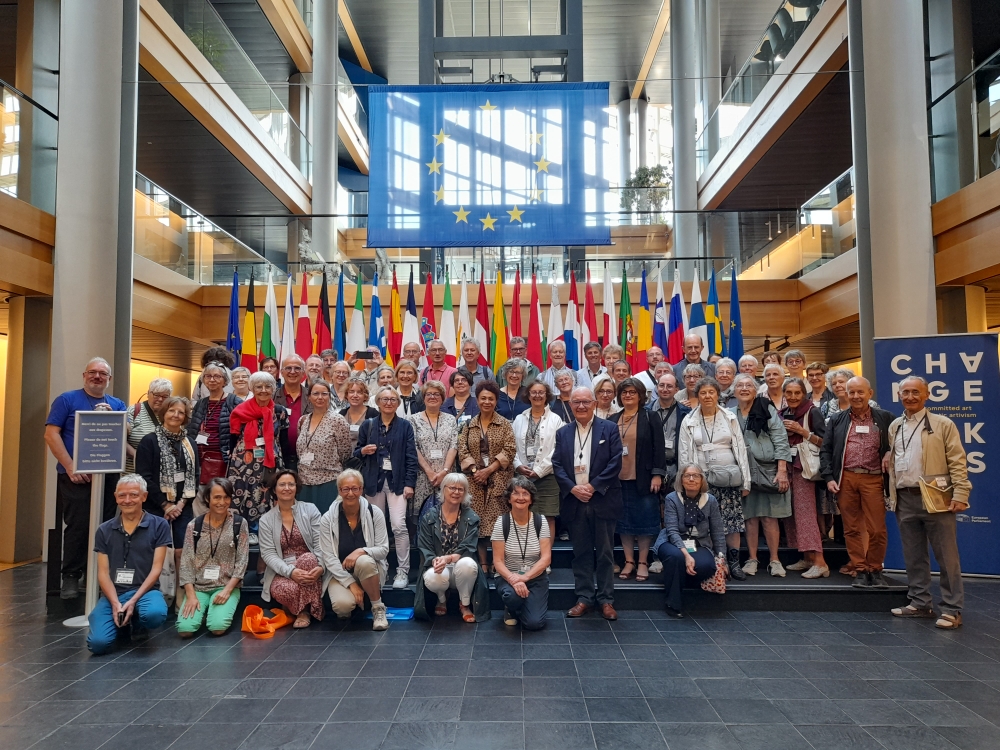 Cette visite intéressante, et même émouvante quand on regarde tous les drapeaux dont le dernier est celui de l’Ukraine, nous a touchés à des titres divers. Et même si nous ne sommes pas tous sensibles aux instances européennes, la photo de groupe a fait de cette visite un moment de fraternité.